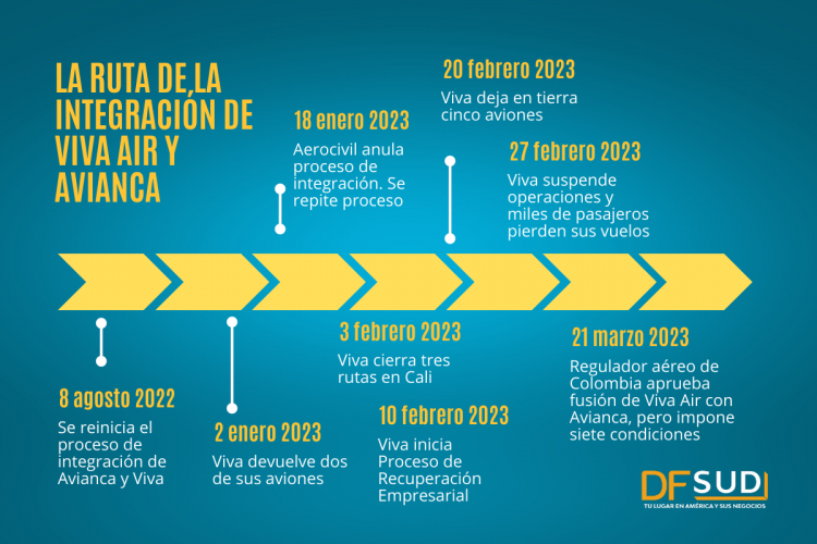 Ocho meses de espera, tres ofertas de compras, reclamos de terceros interesados, una reorganización empresarial y el cese de operaciones marcaron el camino de la low cost colombiana Viva Air en su intención por integrarse con la línea bandera del país cafetero, Avianca.