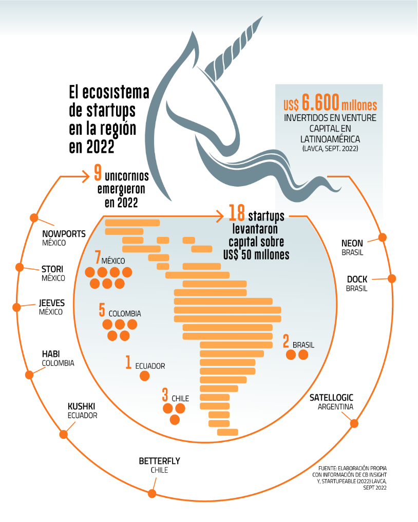 En 2022 el ecosistema de startups tecnológicas de Latinoamérica debió sortear las correcciones del mercado en medio de una crisis global que amenaza con agudizarse en 2023. No obstante, el primer semestre arrojó cifras positivas, nueve unicornios -startups valorizadas en US$ 1.000 millones- y cerca de 20 rondas de inversión sobre los US$ 50 millones.