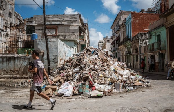 Enjambres de moscas zumban alrededor de pilas de basura podrida en las calles de La Habana. Los roedores plagan casas y restaurantes. Los apagones son constantes,conducir es un lujo que pocos pueden pagar y un cartón de huevos cuesta medio mes de pago.